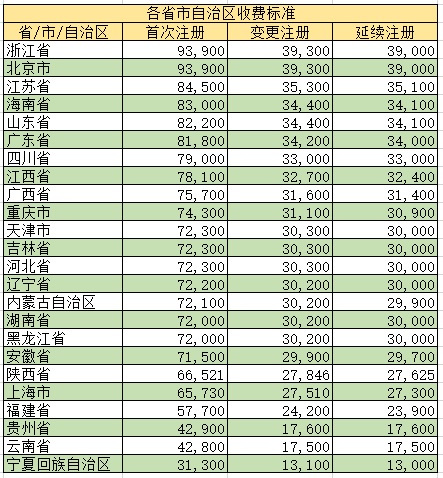 二、各省/市/自治区对二类医疗器械现行注册收费标准: